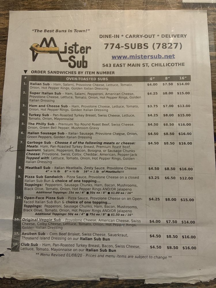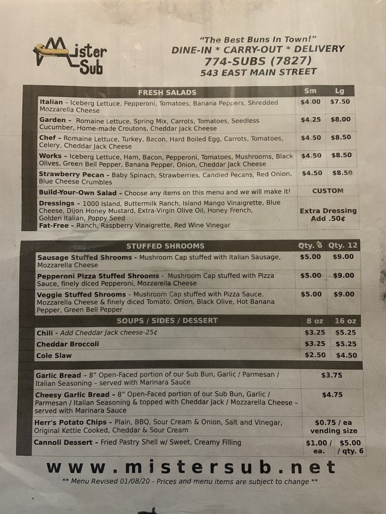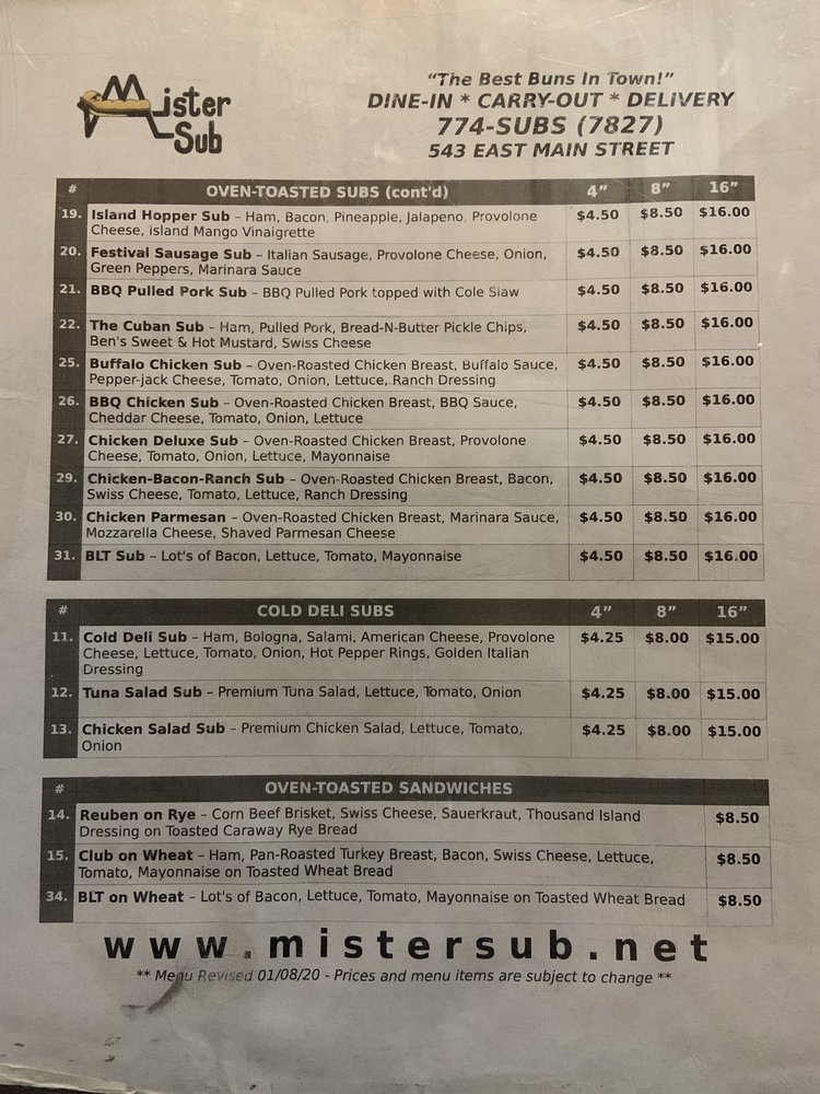 Mister Sub Menu